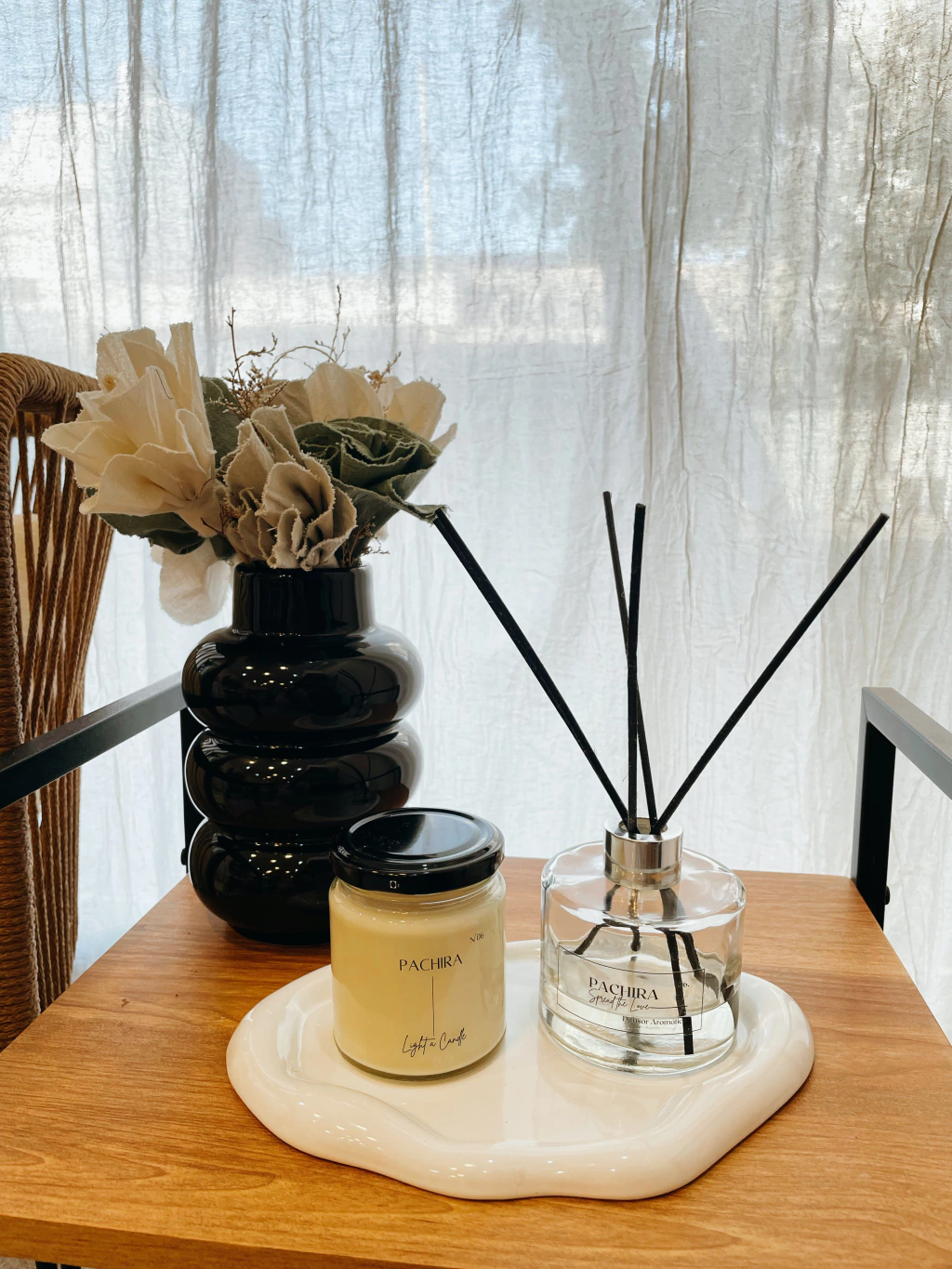 Máxima Difusión: Incluye 6 varillas de ratán de alta porosidad, fundamentales para una liberación óptima y gradual del aroma. Podés personalizar tu set eligiendo las varillas en color natural o negro según el estilo de tu decoración.