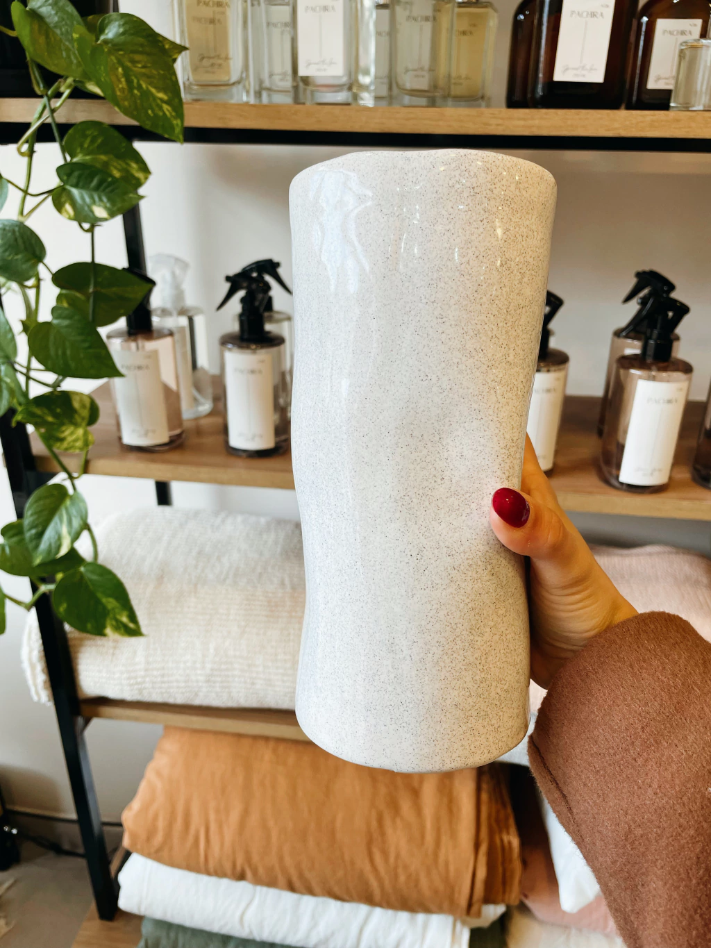 Esencia orgánica y calidez natural. Encontrá el equilibrio perfecto entre lo rústico y lo moderno. El Florero Greda destaca por sus líneas simples y su forma fluida en cerámica esmaltada, convirtiéndose en el objeto ideal para aportar textura y una sensación de calma artesanal a cualquier rincón de tu hogar.