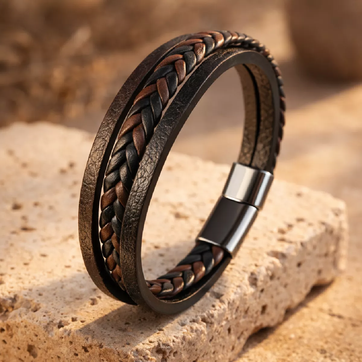Inspirada en la armonía de lo compuesto, la pulsera de cuero Triad redefine la versatilidad en la joyería artesanal. Su estructura de tres hilos entrelazados ofrece un equilibrio perfecto entre robustez y sofisticación, logrando el impacto visual de un conjunto de piezas en la practicidad de un único accesorio.