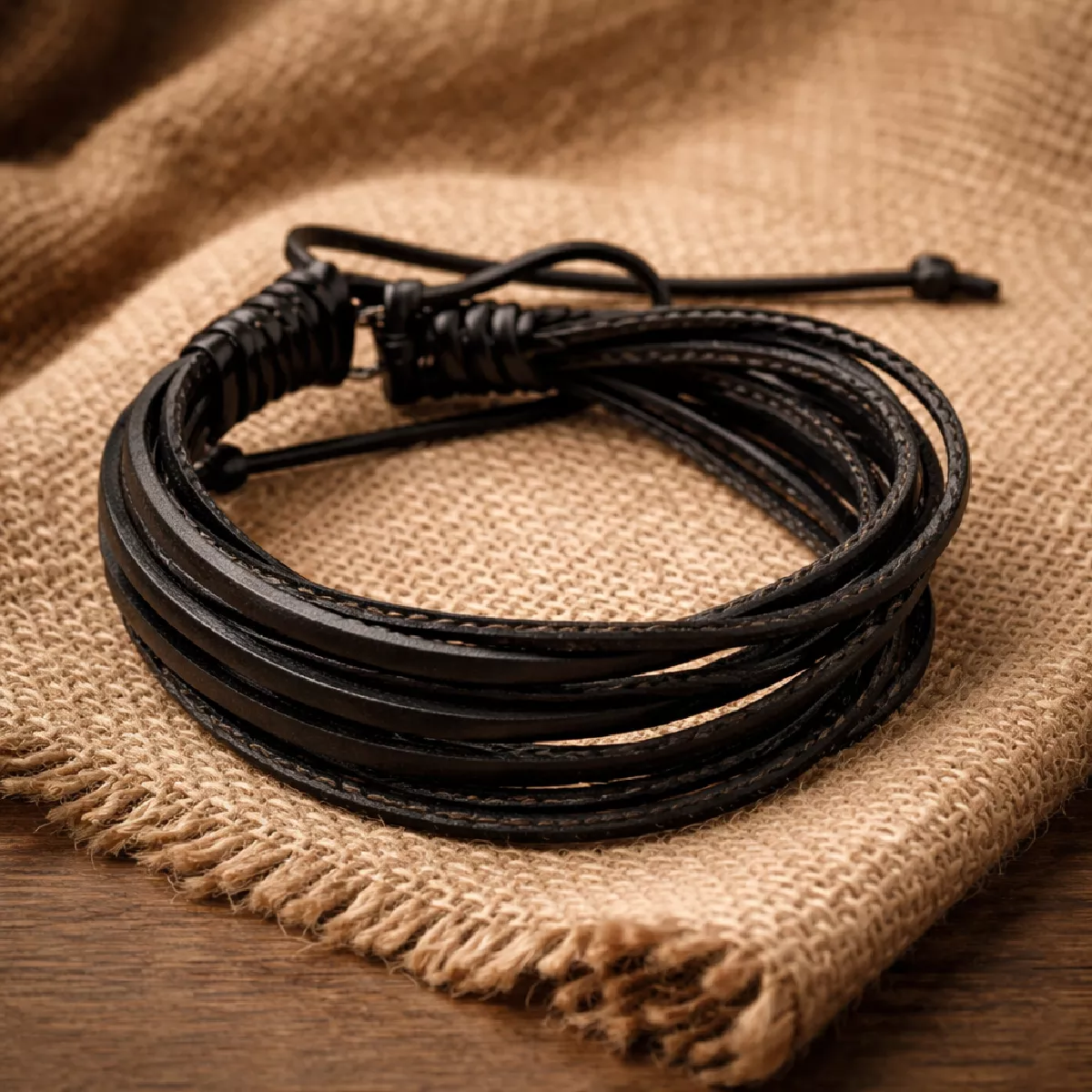 Libertad en estado puro. La pulsera de cuero Wild captura la esencia de lo indómito con un diseño de múltiples tiras que se entrelazan de forma orgánica, evocando una estética rústica y sin pretensiones. Es la pieza ideal para quienes buscan un accesorio que fluya con su propia naturaleza, manteniendo siempre la calidez artesanal de Pachira.
